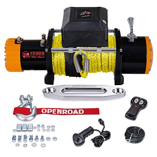 ebay OPENROAD 13000 lb Winch with Rope,12V Electric Winch with Yellow Synthetic Rope Come with Waterproof Control Box, Wireless Remote Control and Power Off Protector,4WD Recovery Winch Kit
